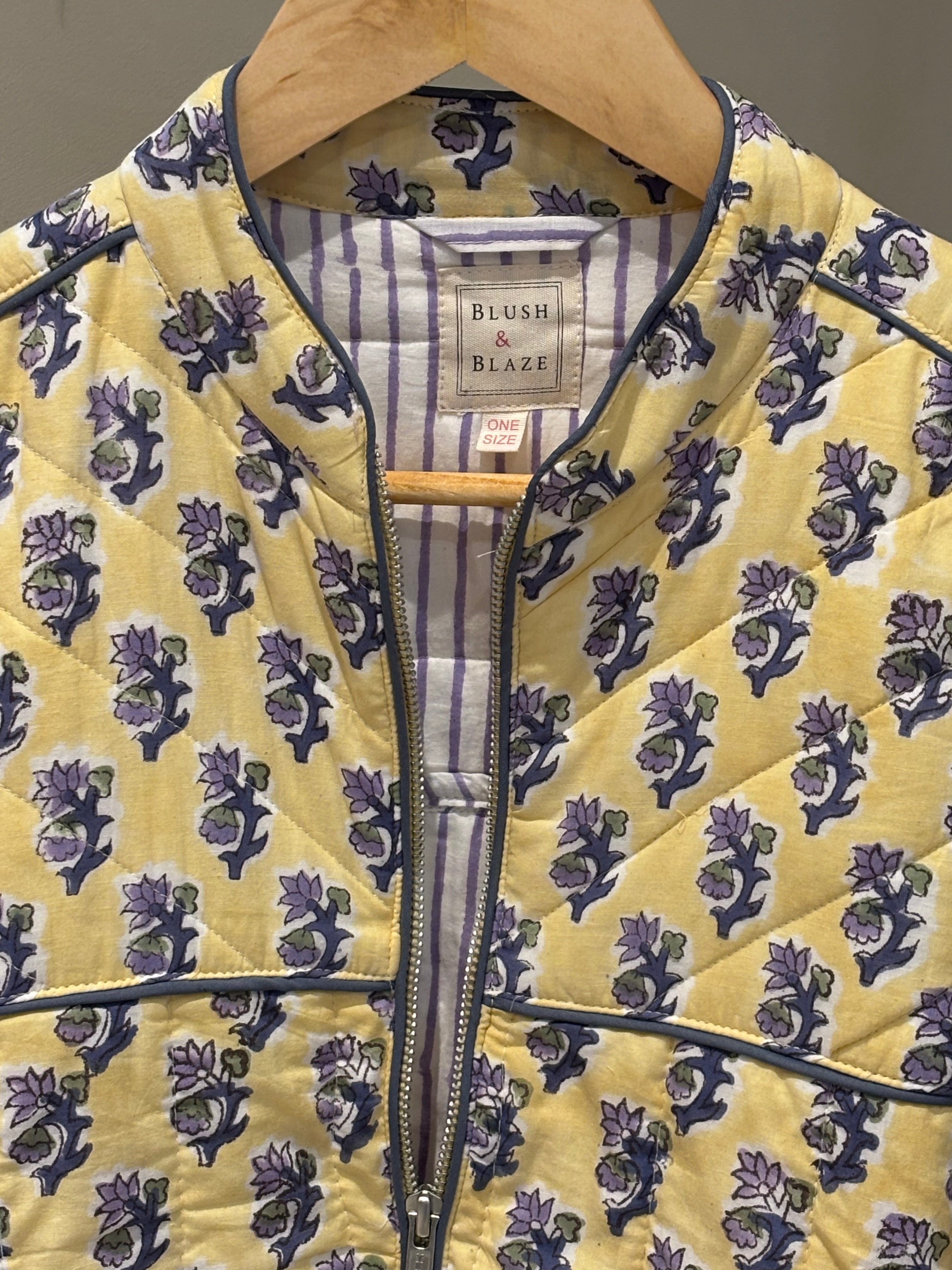 Focusing on jackets and gilets, the brand designs its collections in Hampshire and collaborates with a family-run workshop in Jaipur, where artisans use time-honoured techniques to dye and block print fabrics to bespoke specifications. Each sample is transformed into a beautifully made piece.